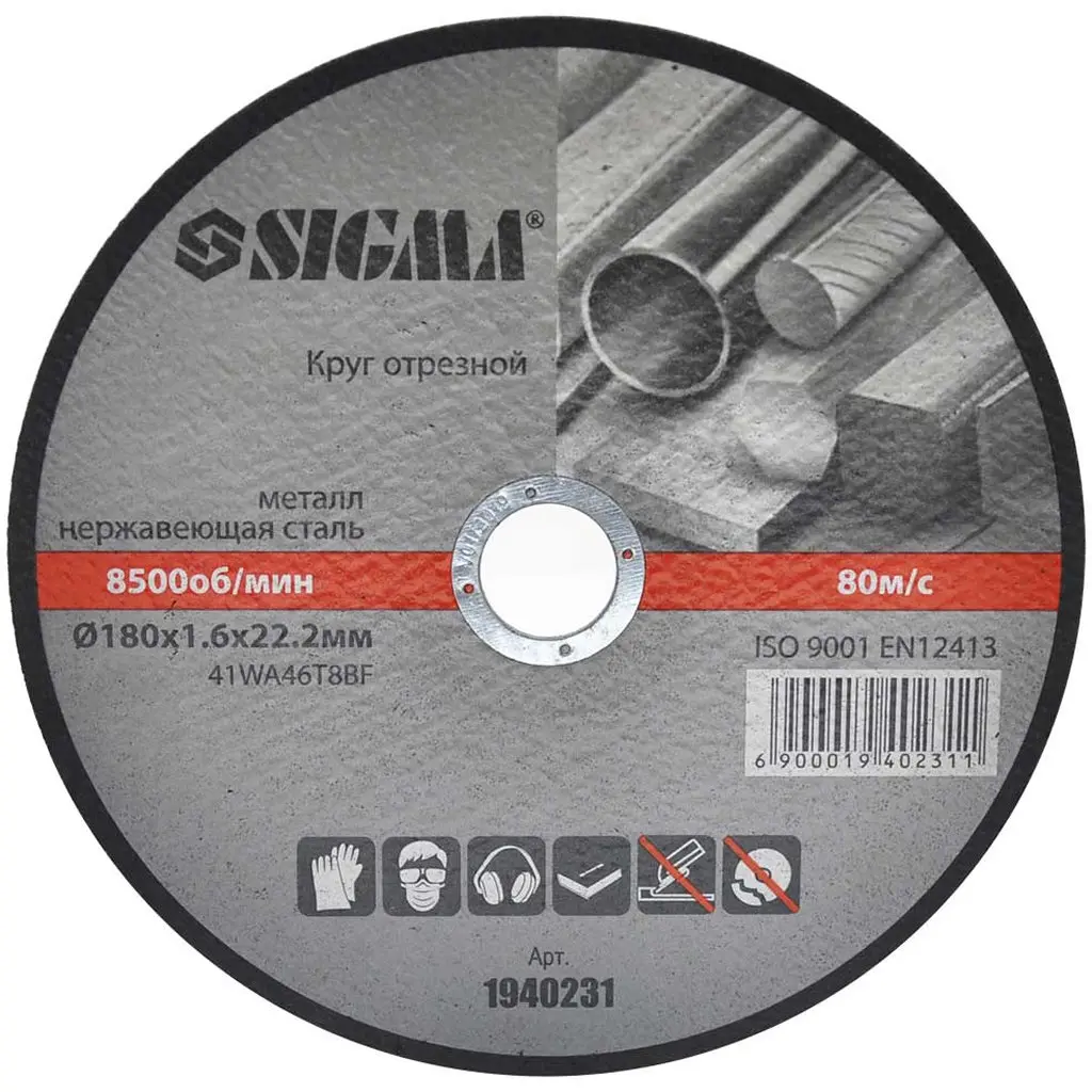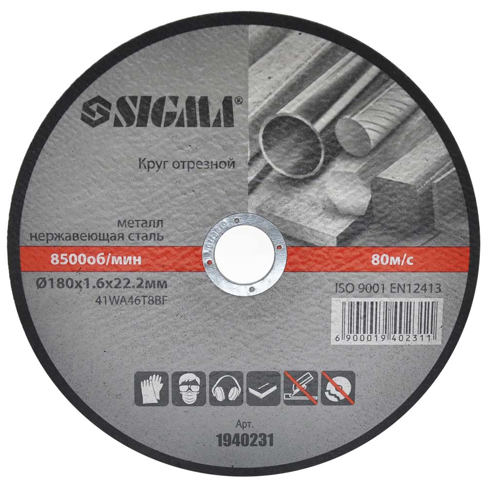 Круг відрізний по металу та нержавіючої сталі Sigma Ø180×1.6×22.2 мм 8500 об/хв (1940231)