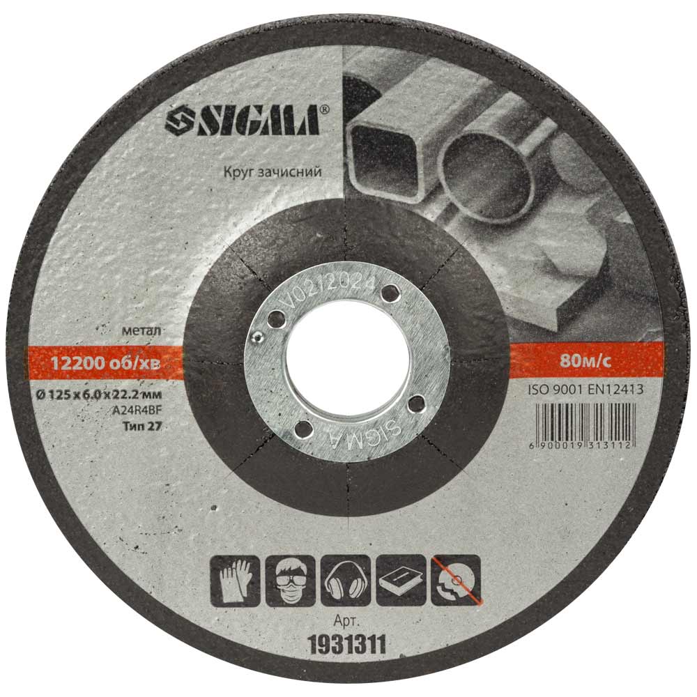 Круг зачисний по металу Sigma Ø125 х 6.0 х 22.2 мм, 12200об/хв