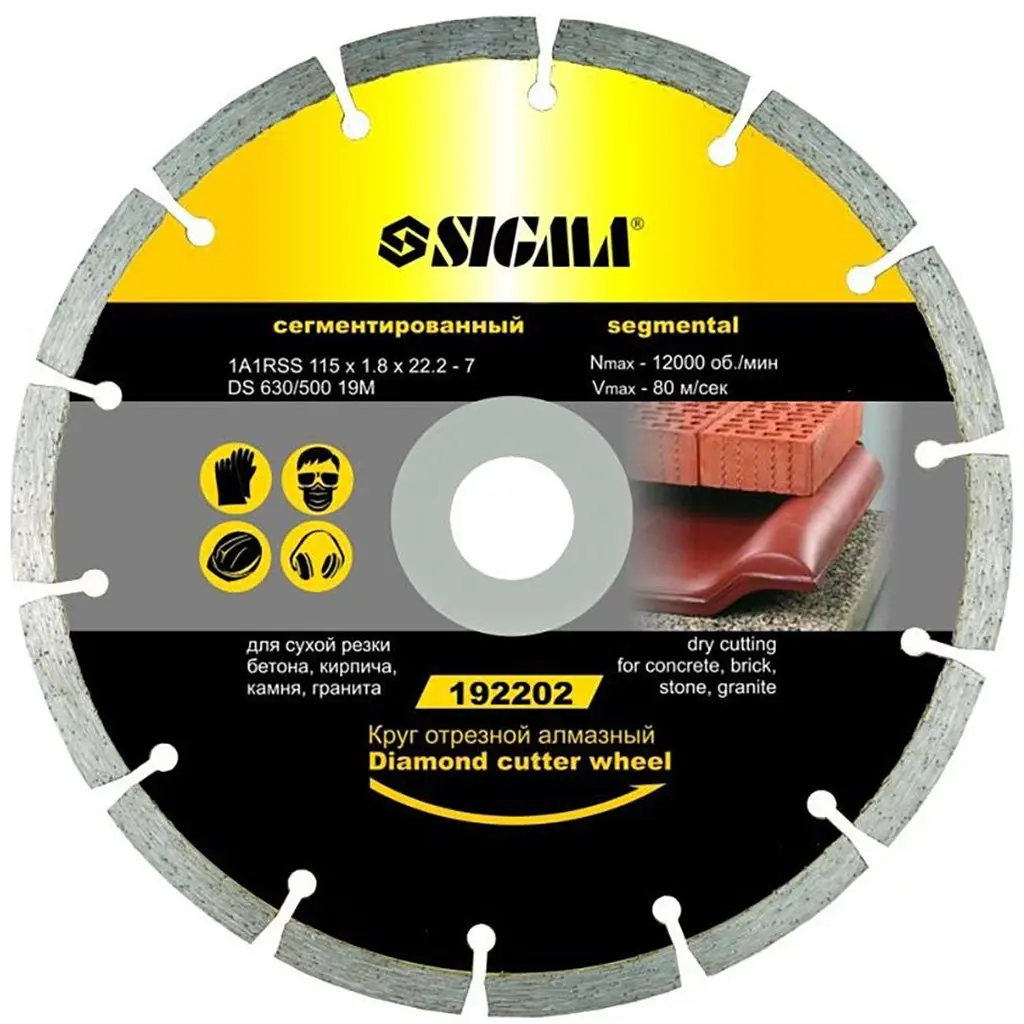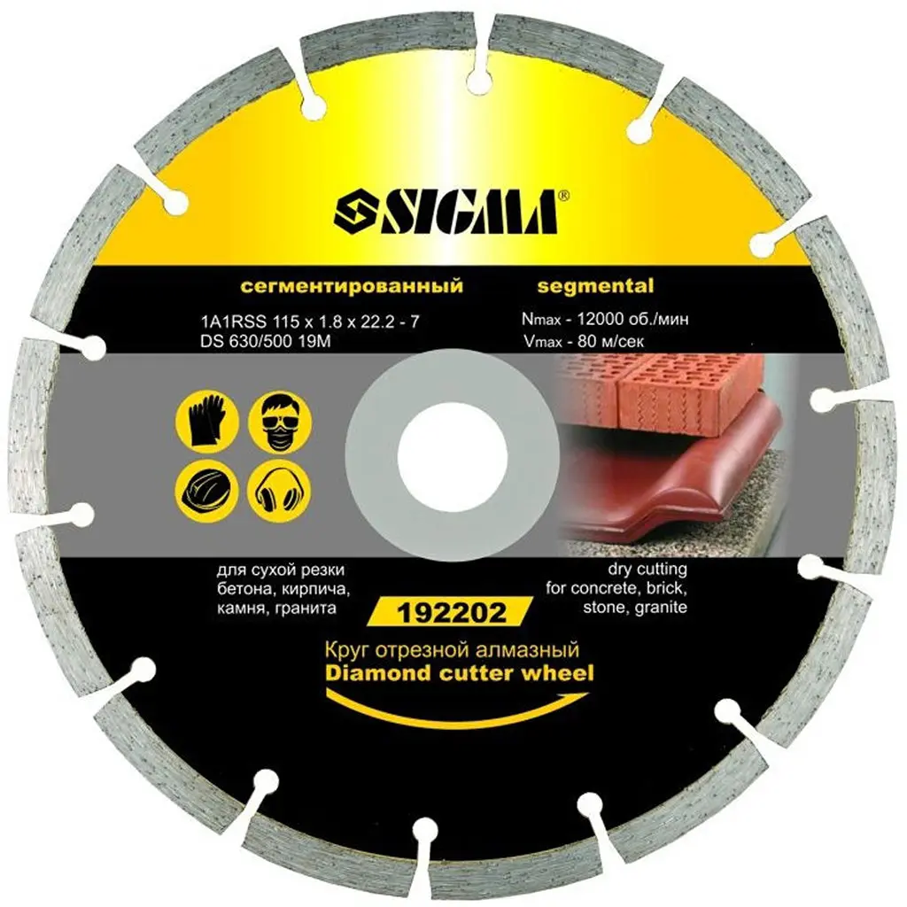 Колір: Хром; Виробник: Sigma; Тип диску: Сегментний; Призначення: Для цегли, Для бетону, Для каменю, Для граніту; Спосіб різання: Сухий; Країна виробника: Китай; Діаметр зовнішній: 110; Діаметр посадочний: 22.2