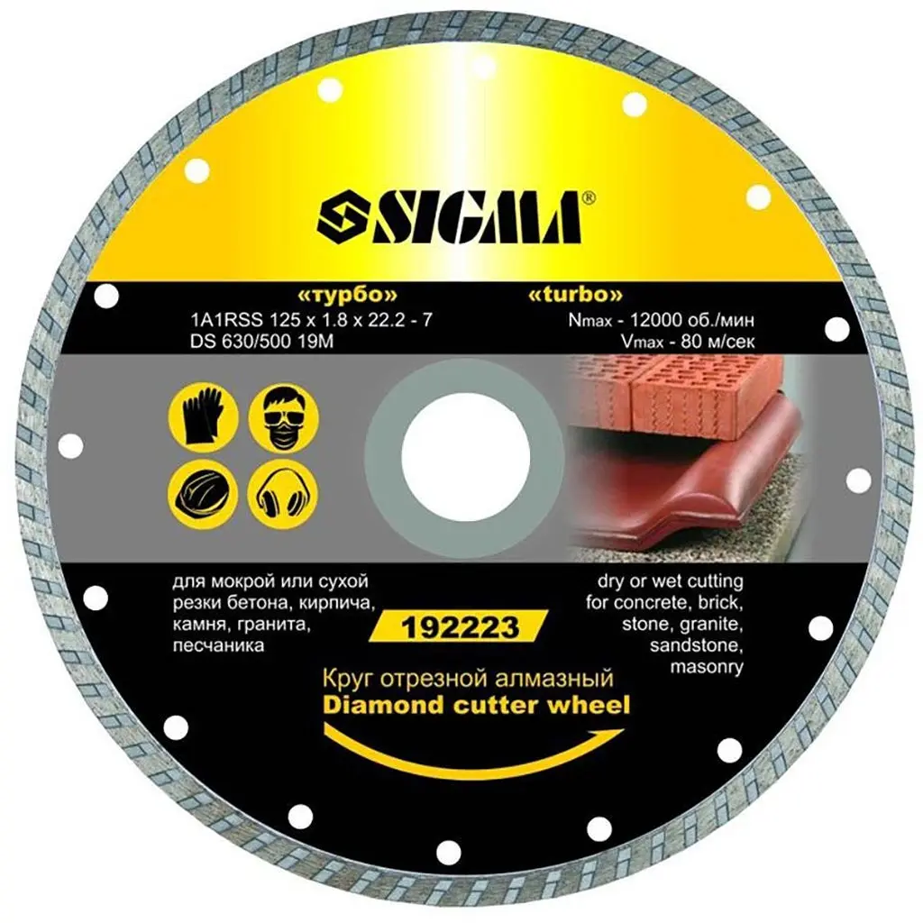 Диск алмазний відрізний Глибокий різ Ø125×22.2мм SIGMA (1923031)