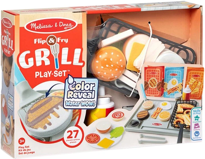 Ігровий набір Melissa and Doug Набір для грилю — це яскравий набір для маленьких кухарів, що обожнюють готувати та досліджувати світ через гру!Приготуйтеся до яскравої та смачної гри! Із даним набором для грилю дитина зможе "готувати" улюблені страви за допомогою води! Просто змочіть продукти — і побачите, як іграшкова їжа змінює колір, "готуючись".Перевертайте "їжу" на грилі, натискайте