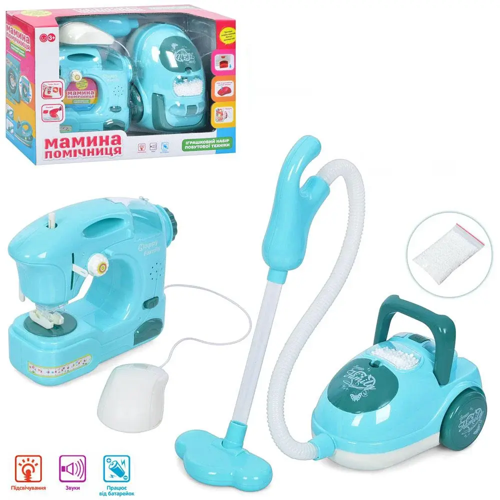 Набір побутової техніки, швейна машина, пилосос, 18 см, звук, світло, на бат.