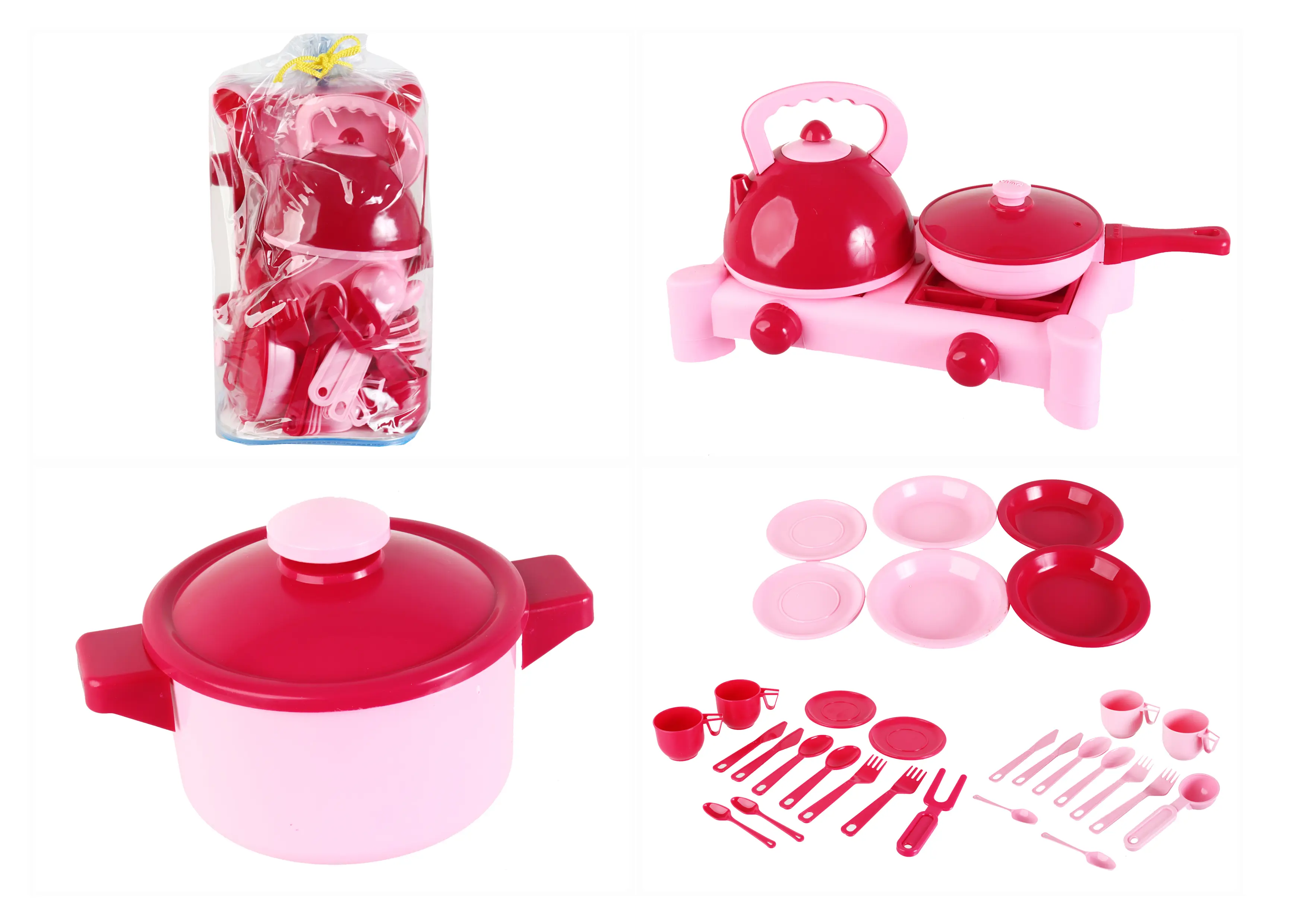 Дитячий ігровий набір посуду з газовою плитою 70408(Pink) 6 предметів, рожевий