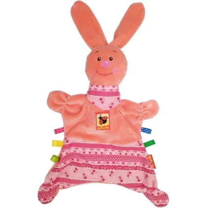 Розвиваюча іграшка з універсальним кріпленням на липучках. Забавну підвіску можна легко закріпити на ручці коляски, ліжечка, автокріслі або до дуг розвиваючого килимка. Малюк із задоволенням буде вивчати іграшку, адже в ній так багато цікавого: хрусткі вушка, різнокольорові колечка, «смачні прорізувачі». Приємна і м'яка на дотик підвіска виконана з натуральних слинопоглинаючих матеріалів. Склад: бавовняна тканина, різнофактурні матеріали, фурнітура для шиття, звукові елементи, холлофайбер. Розмір: 11,5 22,5 11 см.
