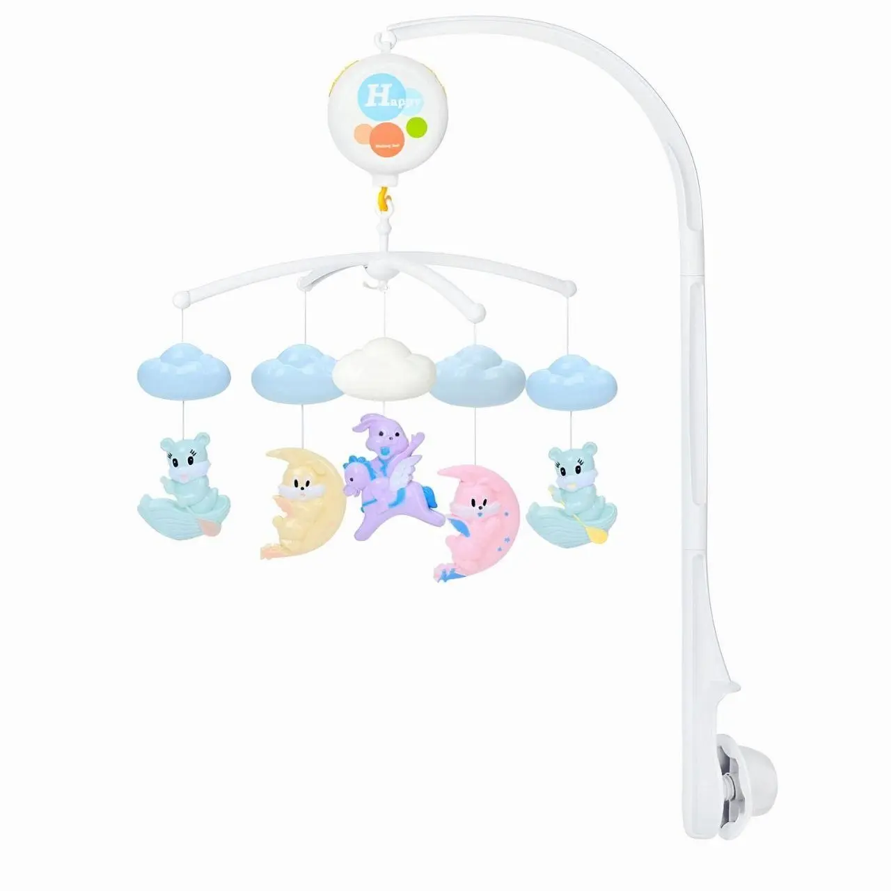 Музична карусель 988-52-1 з підсвічуванням, колисковими мелодіями та м’якими іграшками, регулювання гучності блакитний