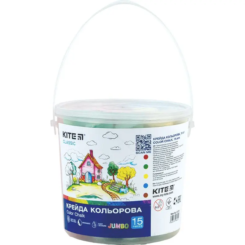 Крейда кольорова Kite Classic Jumbo 15 шт. у відерці (K-074)