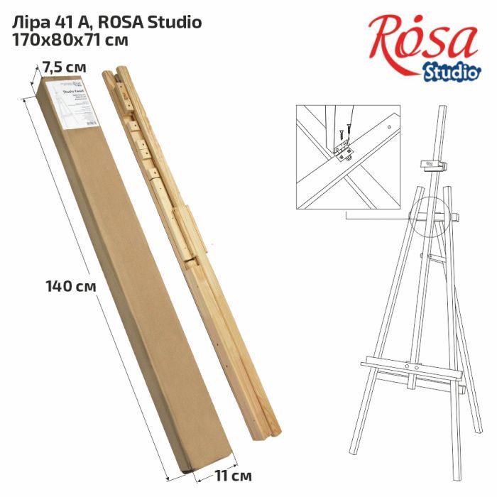 Мольберт Rosa Studio Стаціонарний №41 А Розібраний Ліра Сосна 71 х 80 х 170 см (4823098529378) 4823098529378