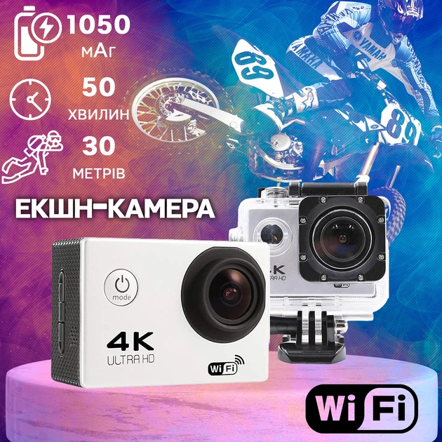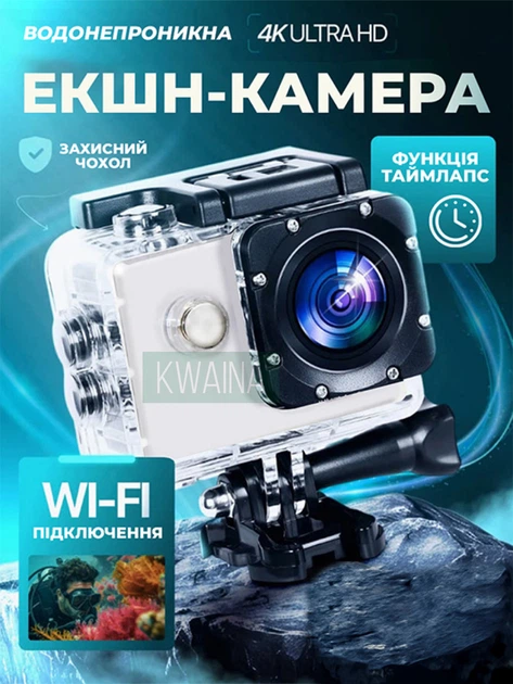 Екшн-камера з підводним боксом Action UltraHD-4K WiFi, 2" екран, водонепроникна 30 метрів, цифрова міні камера