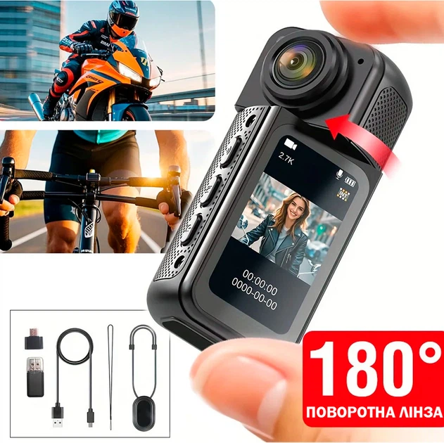Екшн-камера WiFi 2.7K з екраном 1.47", поворотом 180° і магнітним кріпленням