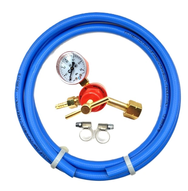 Комплект для підключення до газового балона, редуктор з ручним регулюванням, шланг Flex 2 м, хомути.