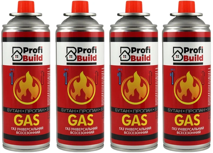 Газовий цанговий балон (картридж) Profi Build пропан-бутан 400 мл / 220 г 4 шт (MBG103)