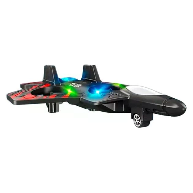 Дитячий літак-дрон винищувач на радіокеруванні з акробатичними трюками, LED-підсвічуванням і режимом утримання висоти, чорни