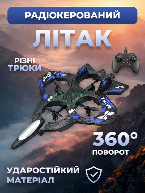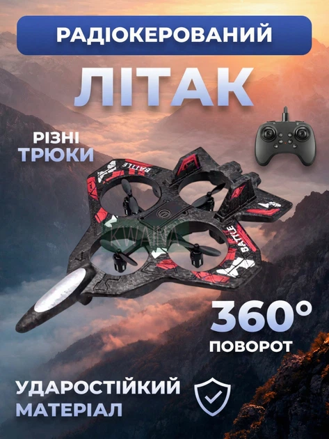 Іграшковий радіокерований літак-винищувач з пультом управління, підсвічуванням та трюками 360°, RC літак для дітей