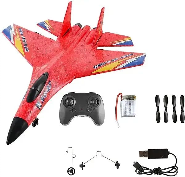 Літак-винищувач на радіокеруванні СУ-27 EPP Crashworthiness 2.4 Ghz, 2 канали, з пультом ДК від 3 батарейок AA, червоний