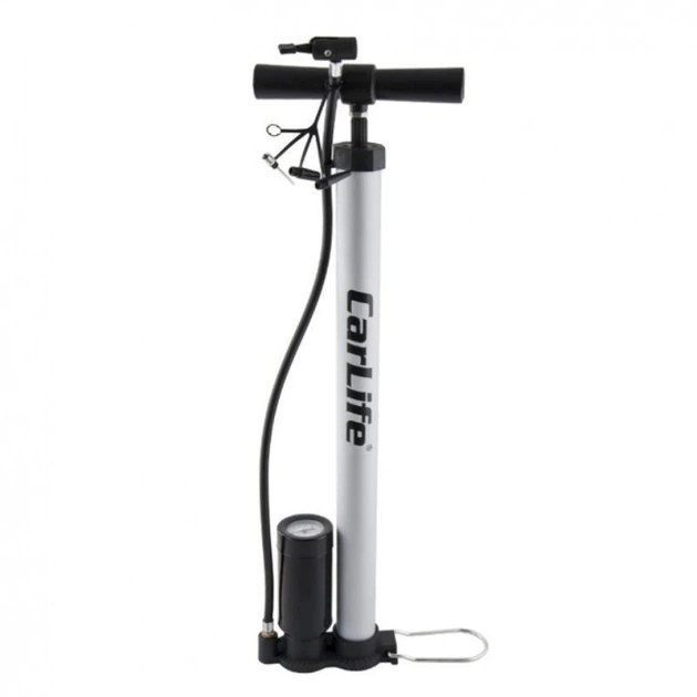 Насос ручний CarLife з манометром для велосипеда та спортивного інвентарю з адаптерами 10Атм (L-IDON33S)