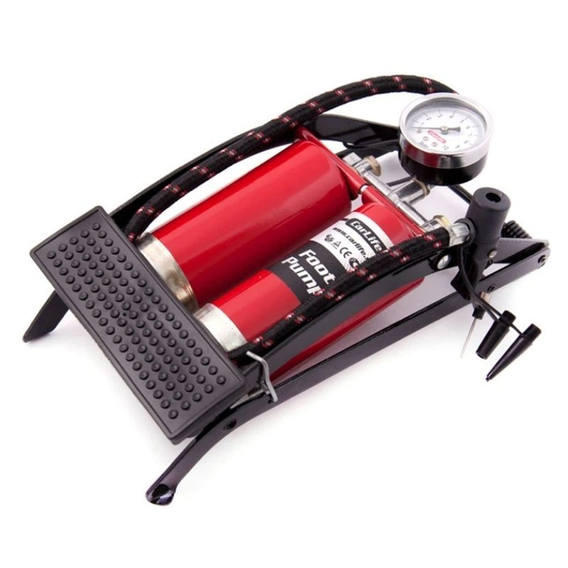 Насос ножний CarLife двоциліндровий з манометром для автомобілів до 10 Атм. (LD-5463)