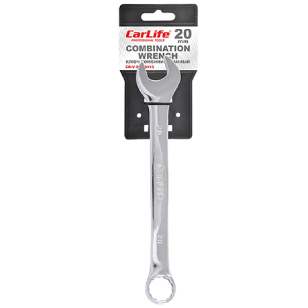 Матеріал корпусу/Сталь|Розмір ключів/головок/Розмір ключа - 20 мм|Колір виробника/Нержавіюча сталь|Бренд/CarLife|Тип/Ключ|Вид/Комбінований|Форма ключа/Пряма|Гарантійний термін/Ні|Кількість предметів, шт/1