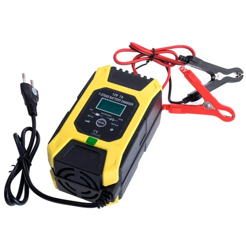 Автоматичний зарядний пристрій для акумуляторів, 12В 7А, ЖК дисплей, жовтий, 15х8.6х6.3 см