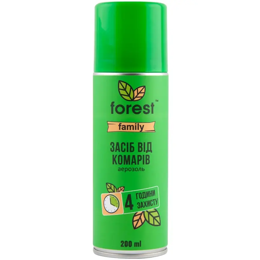 Об`єм, мл/200 мл|Бренд/Forest|Особливості/Ароматизований, Захист одягу до 5 діб, Для дітей|Кількість в упаковці, шт./1 шт.|Вид комах/Комарі, Літаючі комахи, Кровосисні комахи|Час дії, годин/днів/2 годин|Вид/Для нанесення на одяг і тіло