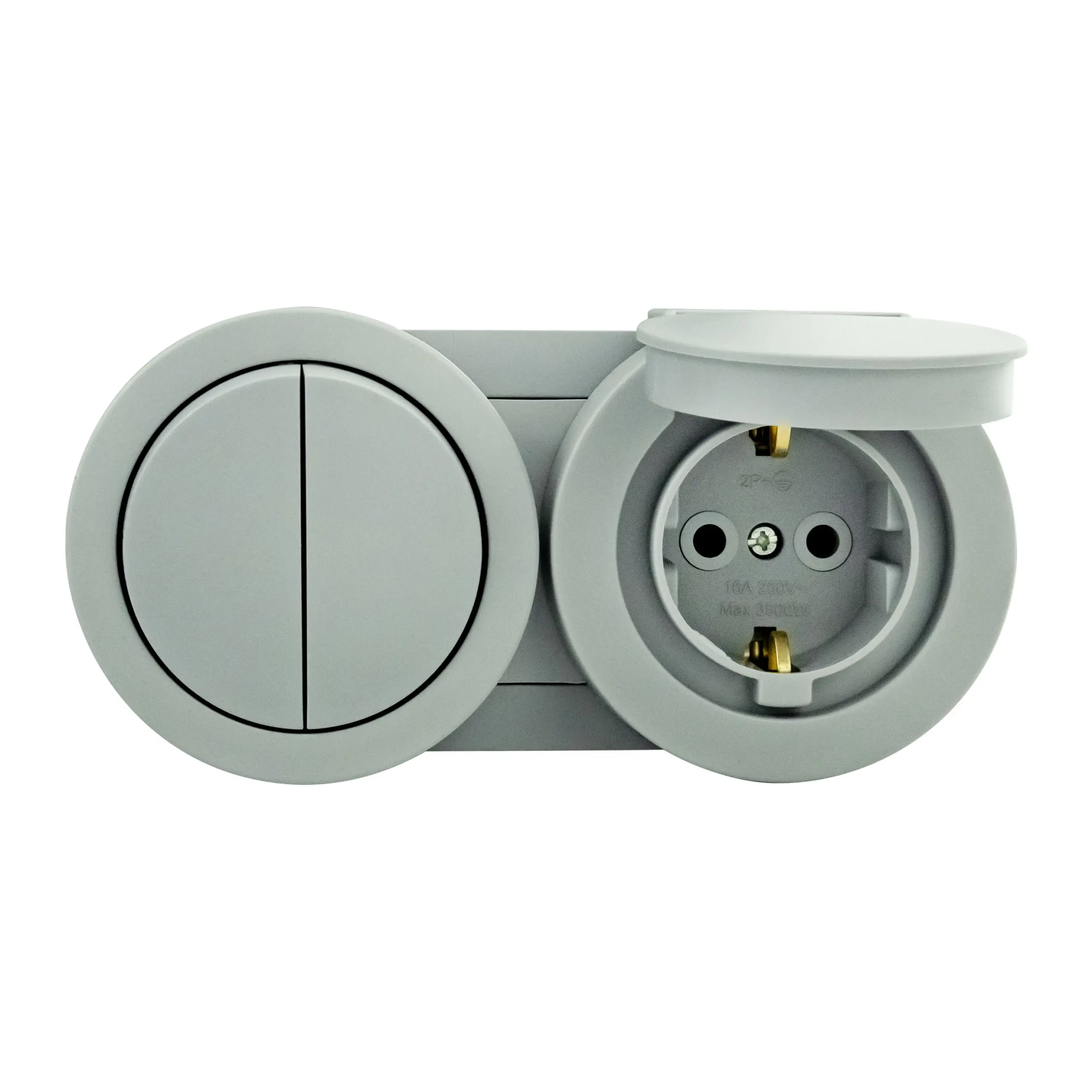Розетка Ovivo Electric xOne з заземленням та кришкою + вимикач 2-й сірий