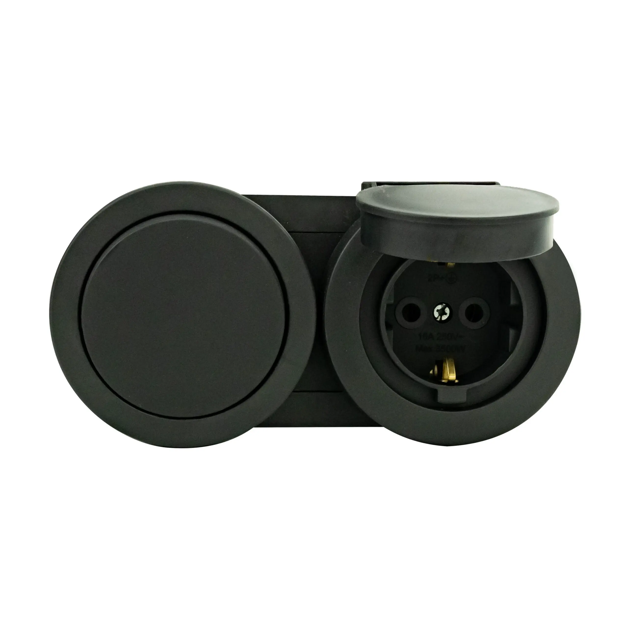 Розетка Ovivo Electric xOne з заземленням та кришкою + вимикач 1-й антрацит