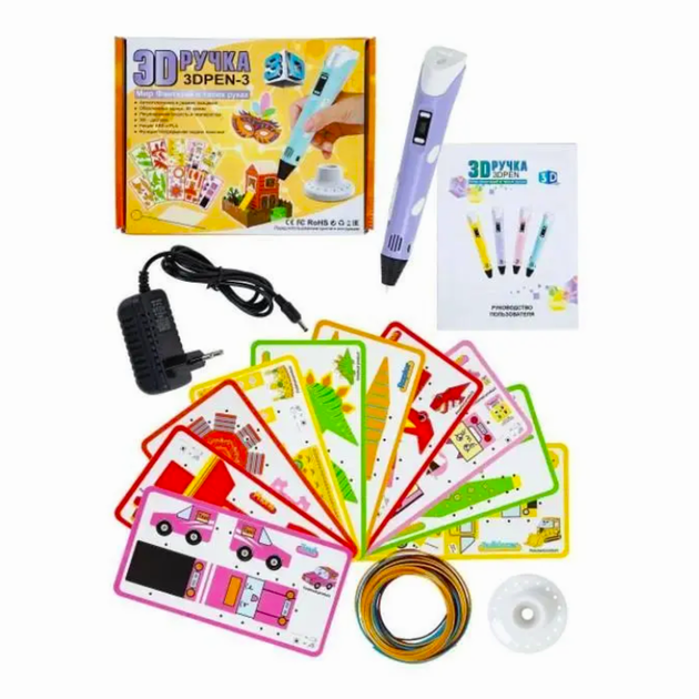 3D-ручка для малювання комплект 9M PLA (пластик 3 кольори), USB Purple