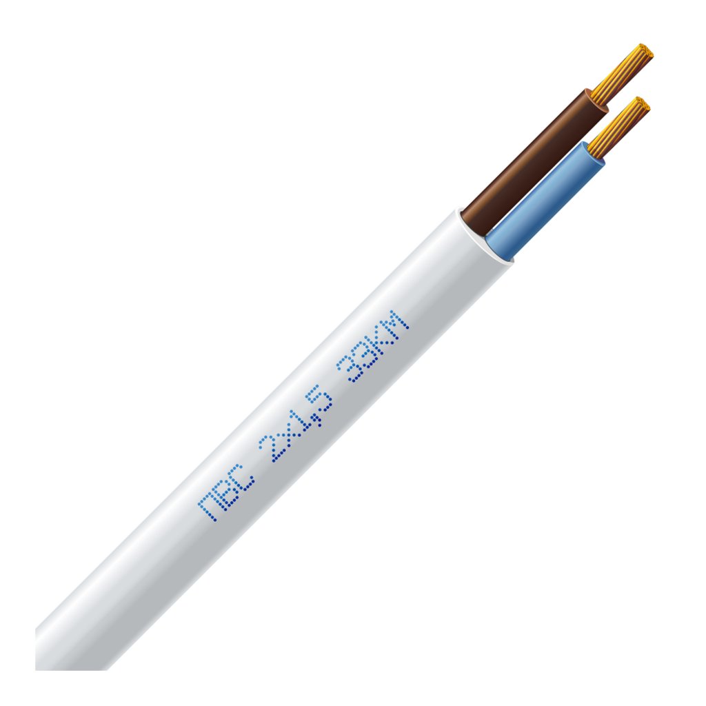 Кабель силовий мідний ЗЗКМ ПВС 2x2.5 білий (1 метр)