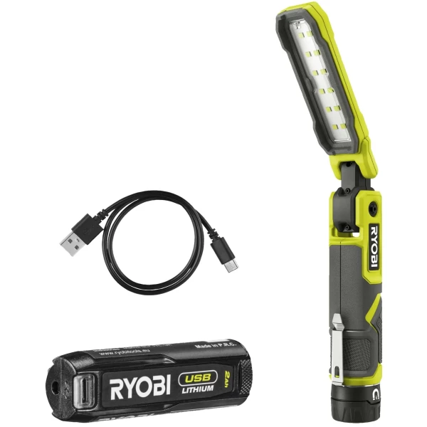 Ryobi Ліхтар інспекційний акумуляторний usb Lithium rli4-120g, 4в, 2А·год, 650лм, 3 режими, магніт, затискач 0.17кг 51330062