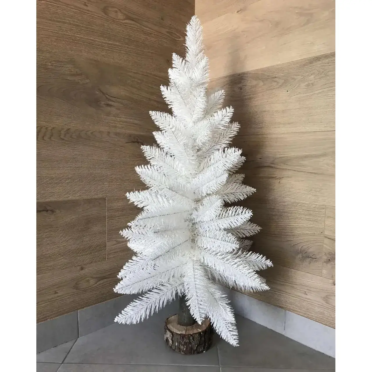 Ялинка штучна Hvoya Elegant настільна 85 см на пеньочку біла