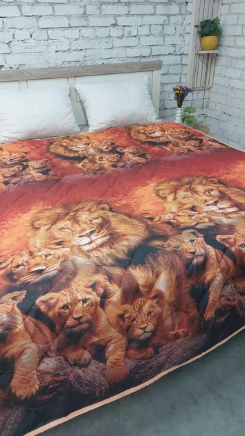 Тонка бавовняна ковдра гіпоалергенна Євро (200х215 см) Червона з левами (Д-lito-kovdra-001/13-03)