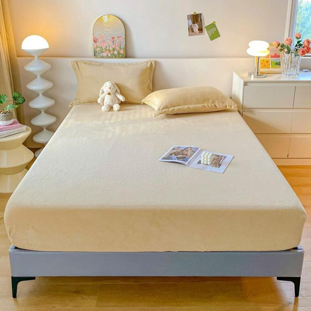 Простирадло на гумці Koloco Велюр на матрац 160х200+25 см Світло Бежевий