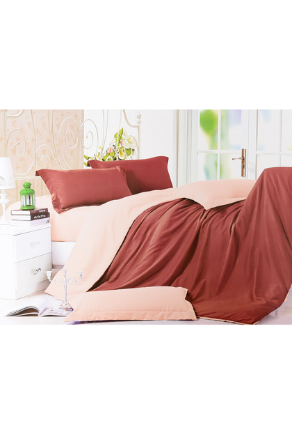 Комплект постільної білизни бордовий з персиковим півторка Koloco (152447)