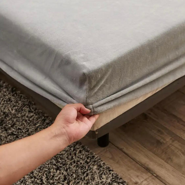 Простирадло на гумці Koloco Велюр на матрац 160х200+25 см Сірий