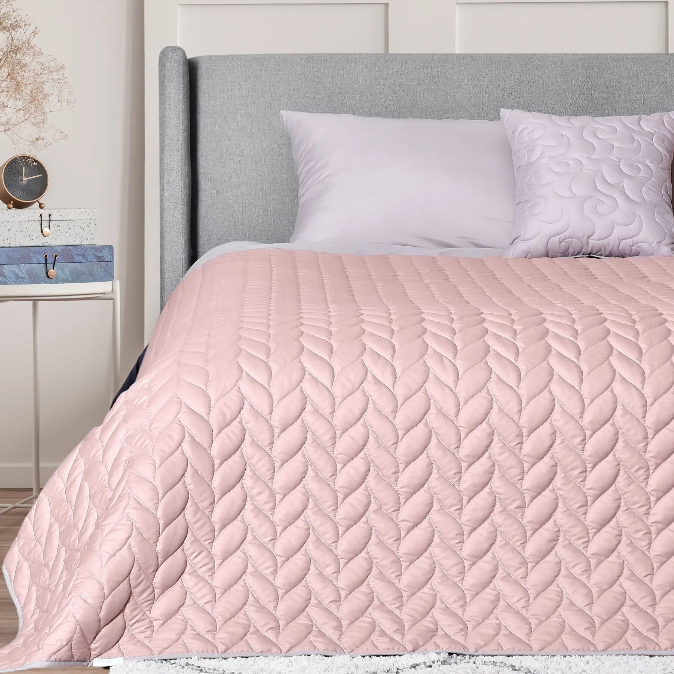 Двостороннє покривало Ideia Стиль Люкс, пудровий та світло-сірий, 260х240 см (8-13500)