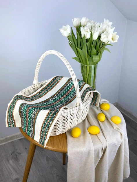 Великодній рушничок лляний для кошика Рандеву 70х30 см Зелений