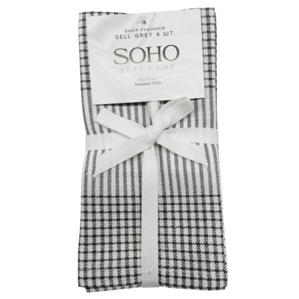 Набір 4 бавовняних рушники Soho кухонні 40x40 см Sell Grey (BS 45564S/1)