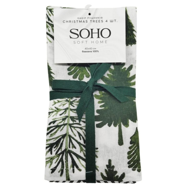 Набір 4 бавовняних рушники Soho кухонні 40x40 см Christmas trees (BS 45565S/1)