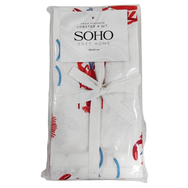 Набір 4 бавовняних рушників Soho кухонні 40x40 см Lobster (BS 45564S)
