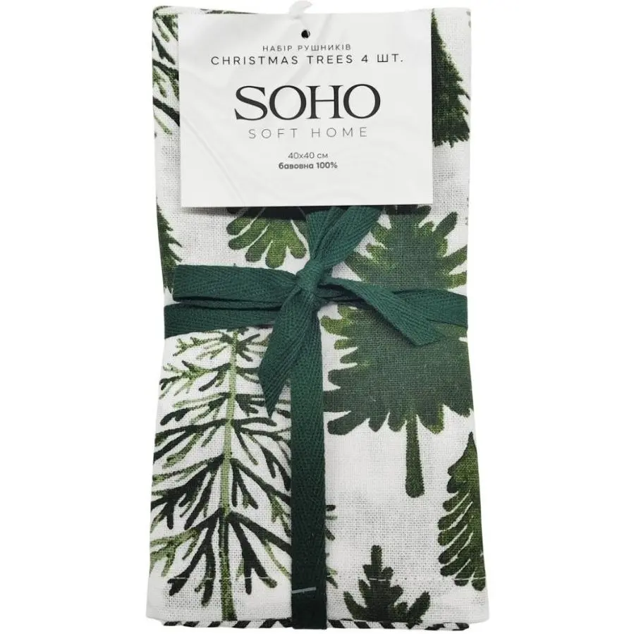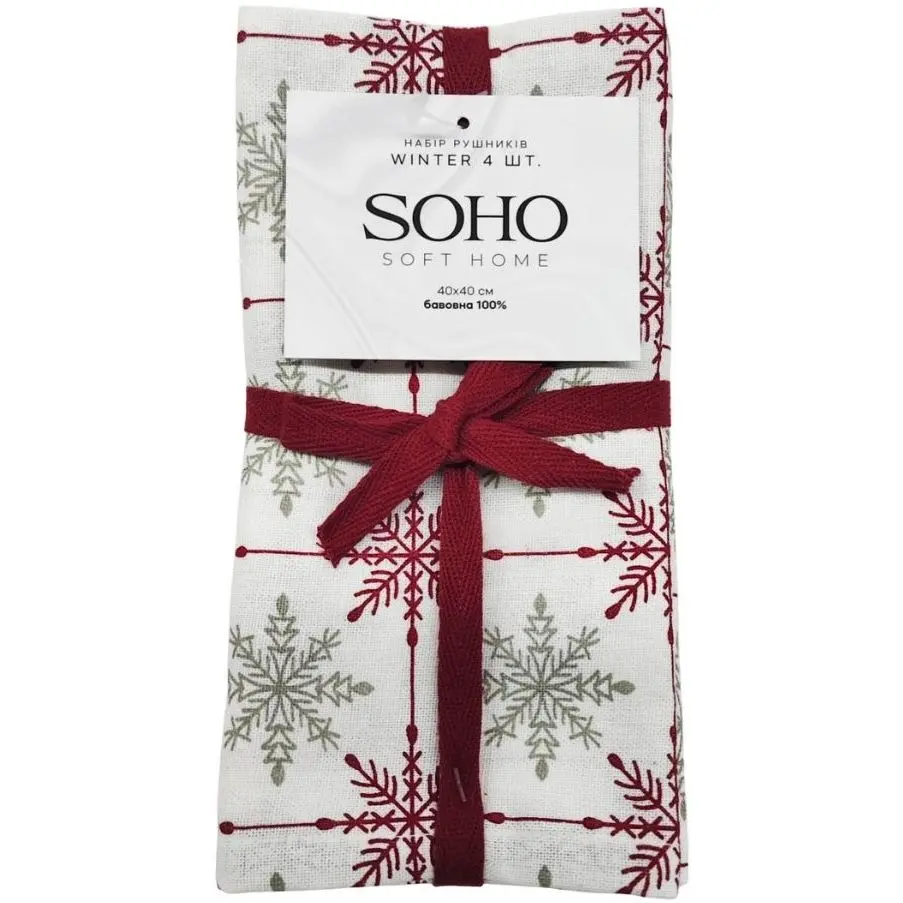 Особливості/З принтом|Матеріал/Бавовна|Бренд/SOHO|Розмір/40 х 40 см|Базовий колір/Білий|Щільність матеріалу, г/м²/170 г/м²|Застосування/Кухонне, Для рук|Кількість в упаковці, шт/4 шт|Тематика/Новий рік|Країна виробництва/Китай