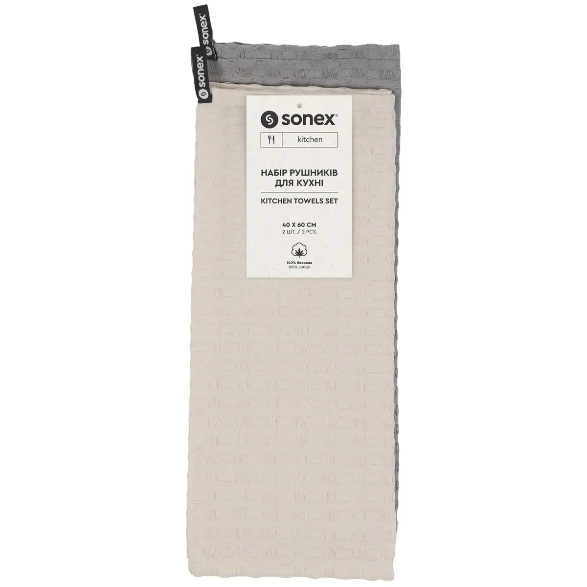 Набір вафельних рушників для кухні Sonex Cleo 40х60 см, 2 шт. сірий та бежевий (SO102550)
