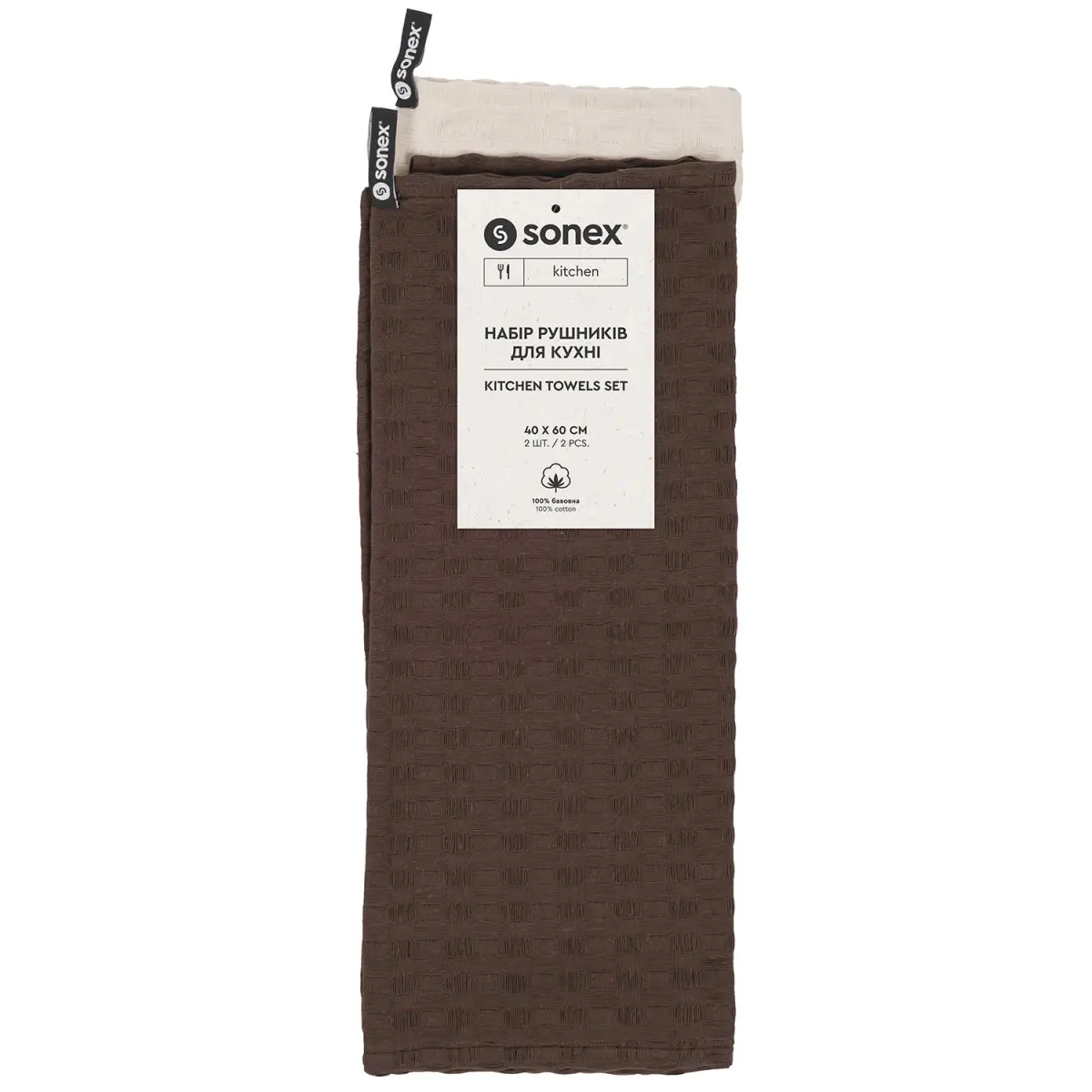 Набір вафельних рушників для кухні Sonex Cleo 40х60 см, 2 шт. бежевий та коричневий (SO102551)