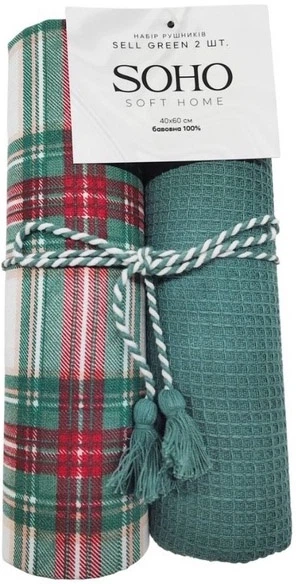 Набір 2 бавовняних рушники Soho кухонні 40x60 см Sell Green (BS 65527A/1)
