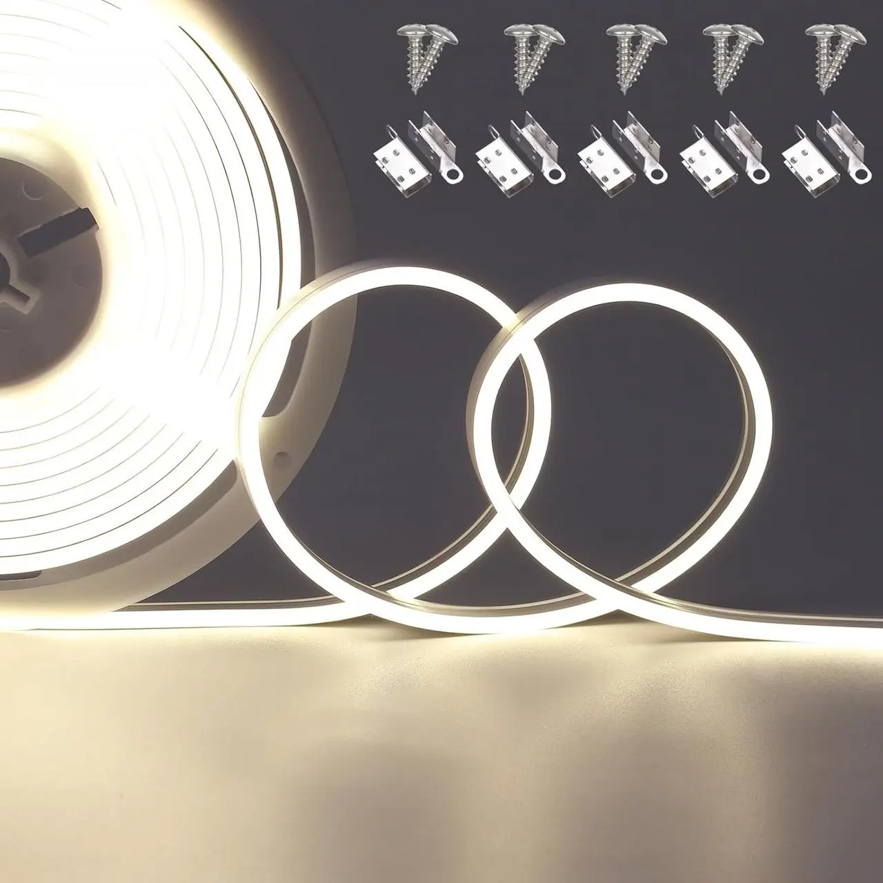 Неонова світлодіодна стрічка JOYLIT 24 В, 5 м, натуральний білий, 6500 K, IP67 Водонепроникна, 4 x 10 мм Тонка бічна смуга