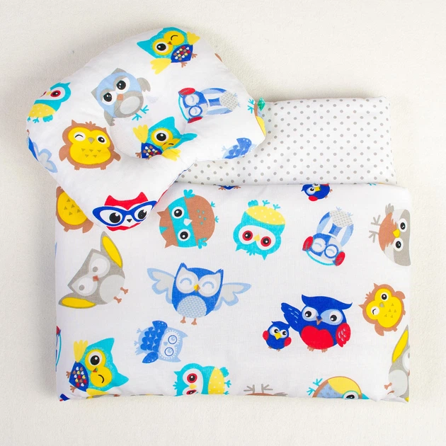 Комплект в дитячу коляску BabySoon Ніжні совушки ковдру 65 х 75 см подушка 22 х 26 см (106)
