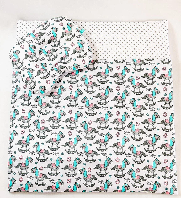 Річний комплект в коляску BabySoon Сірі конячки ковдру 65 х 75 см подушка 22 х 26 см (576)