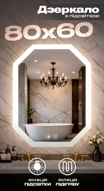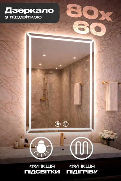 Дзеркало з підсвіткою та підігрівом 80х60 см смарт дзеркало для ванної кімнати BRS