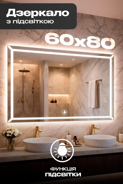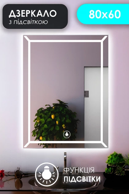 Дзеркало з підсвіткою LED 80х60 см дзеркало для ванної кімнати смарт дзеркало BRS