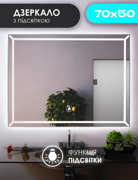 Дзеркало з підсвіткою LED 70х50 дзеркало для ванної кімнати настінне смарт дзеркало світлодіодне BRS