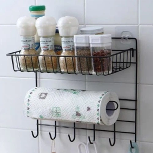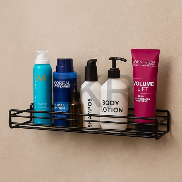 Навісна поліця металева на клейкій стрічці 27х11х15 см Чорна (R88696)
