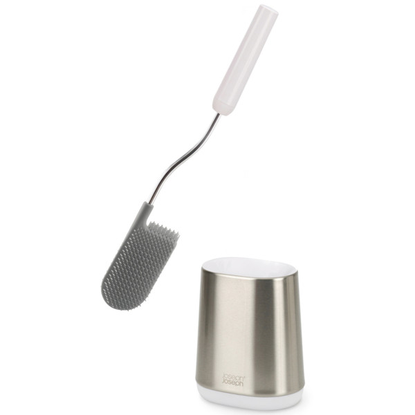 Ершик туалетный Joseph Joseph 70522 - удобная и компактная подставка.Головка щетки гибкая и выполнена в D-образной форме, благодаря чему вычищает даже под ободком. Щетины резиновые, далеко расположены друг от друга, поэтому между ними не собирается грязь.